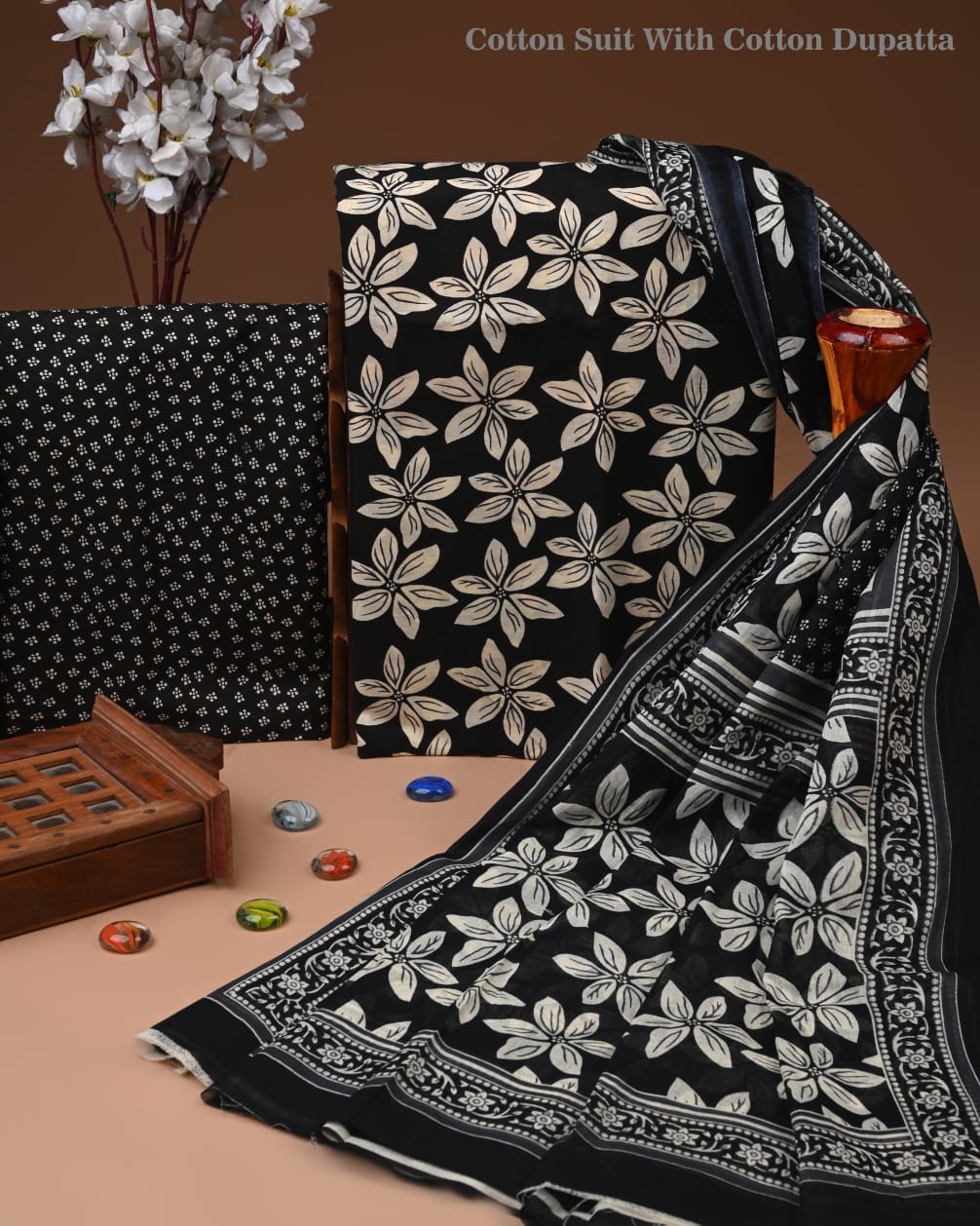 Premium Hand Block printed Cotton Suits With Cotton Dupatta (BACOTCO35)