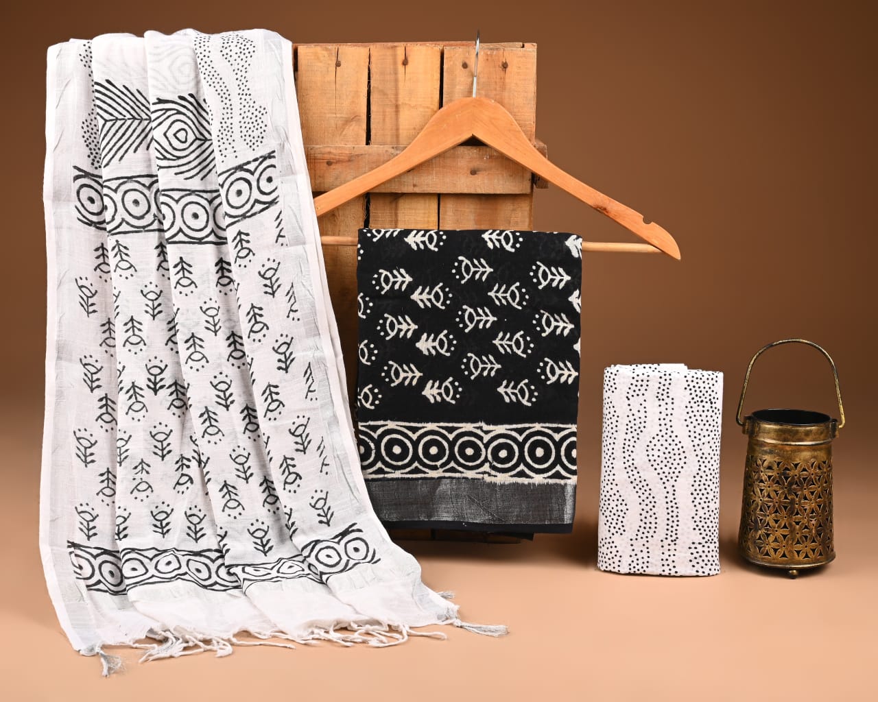 Design: Authentic Bagru hand‑block print by Rajasthan artisans using natural dyes, edged with a subtle zari border for festive elegance