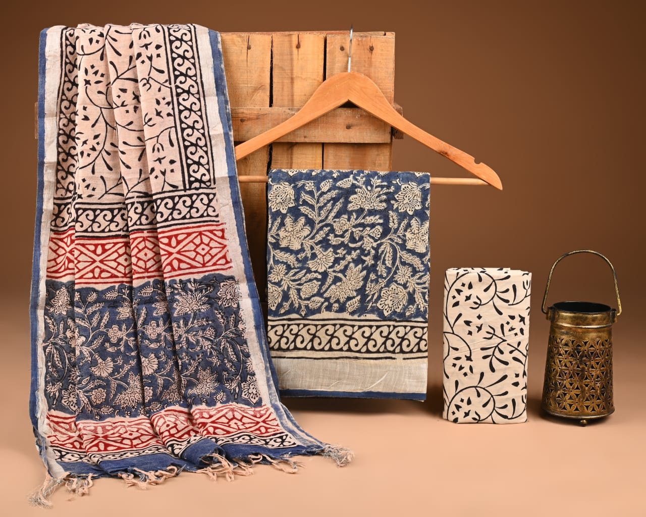 Design: Authentic Bagru hand‑block print by Rajasthan artisans using natural dyes, edged with a subtle zari border for festive elegance